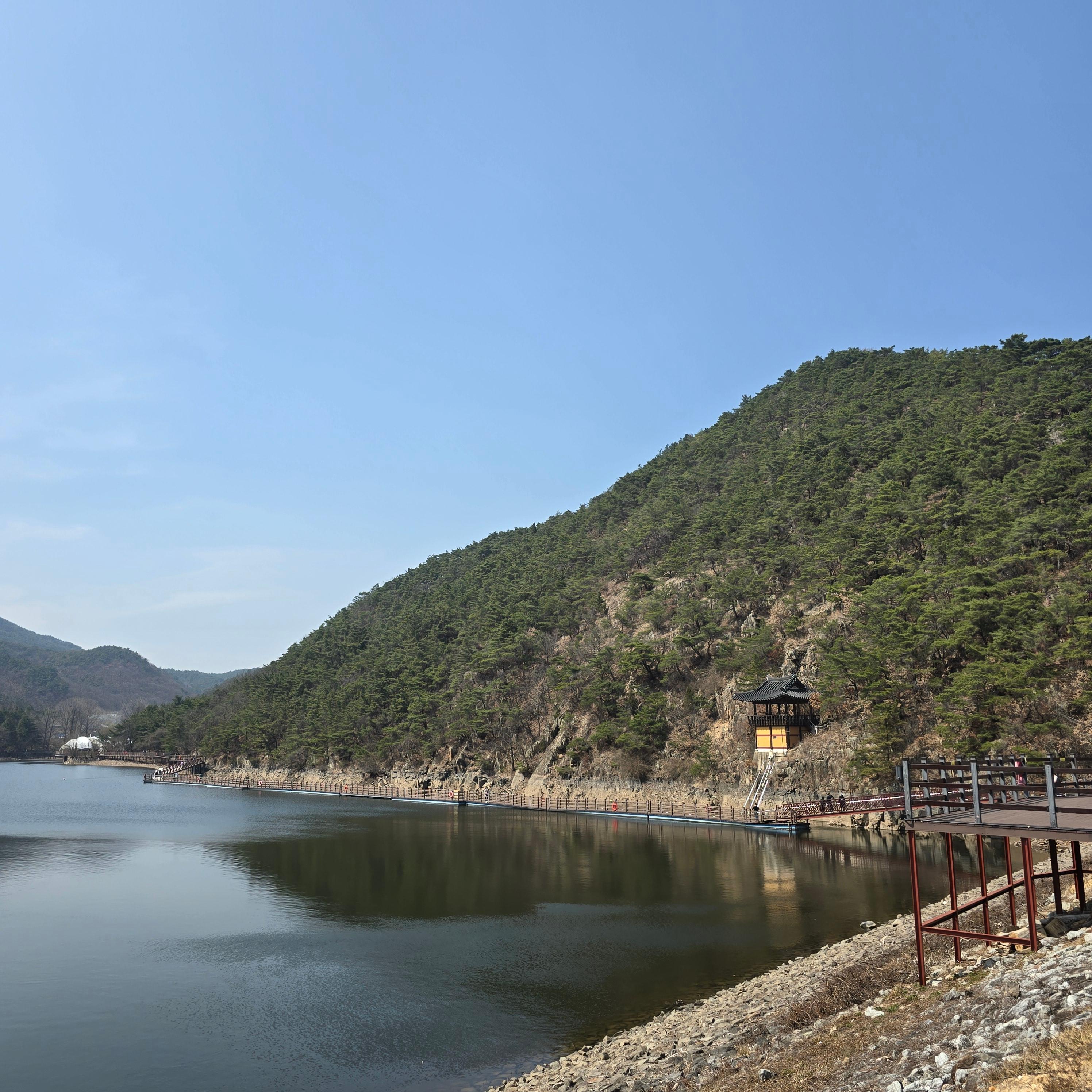 저수지 위에 떠 있는 정자로, 인생 사진을 찍기에 좋은 포인트입니다.